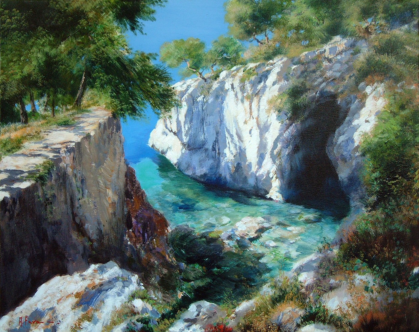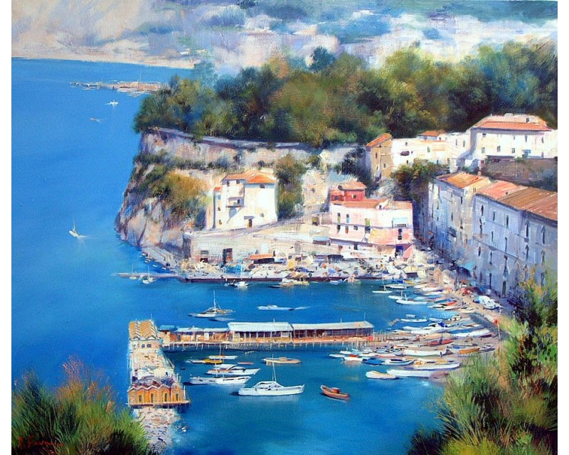 Coast oil painting. Port of Sorrento oil on canvas, original oil painting